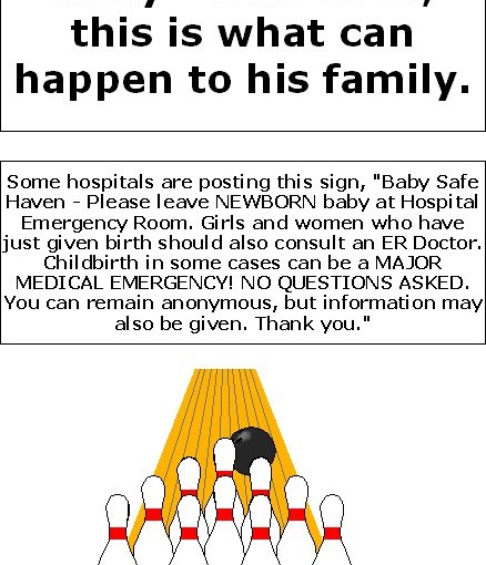 Some hospitals are posting this sign, “Baby Safe Haven – Please leave NEWBORN baby at Hospital Emergency Room. Girls and women who have just given birth should also consult an ER Doctor. Childbirth in some cases can be a MAJOR MEDICAL EMERGENCY! NO QUESTIONS ASKED. You can remain anonymous, but information may also be given. Thank you.”