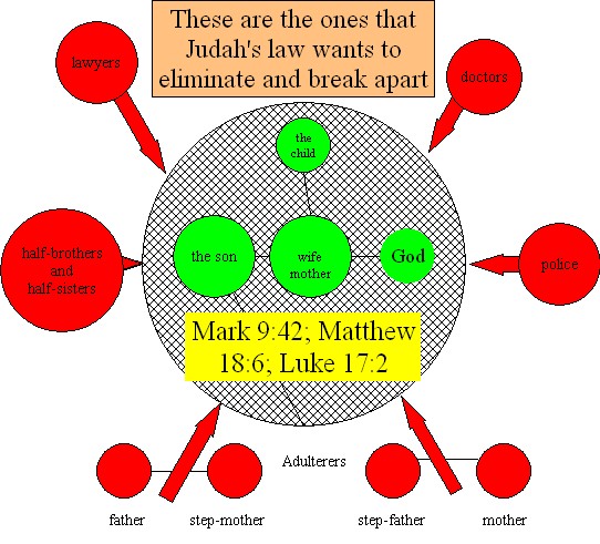 Our laws, Judah’s law, tell us that the individual committing the crime is solely responsible for what they do. But Jesus had a different interpretation. He said in Mark 9:41, “And whosoever shall offend one of these little ones that believe in me, it is better for him that a millstone were hanged about his neck, and he were cast into the sea.” It is a proven fact that Adulterers and Adulteresses harm the children of the first family. Start putting them in jail before the children of the first family that they have harmed!